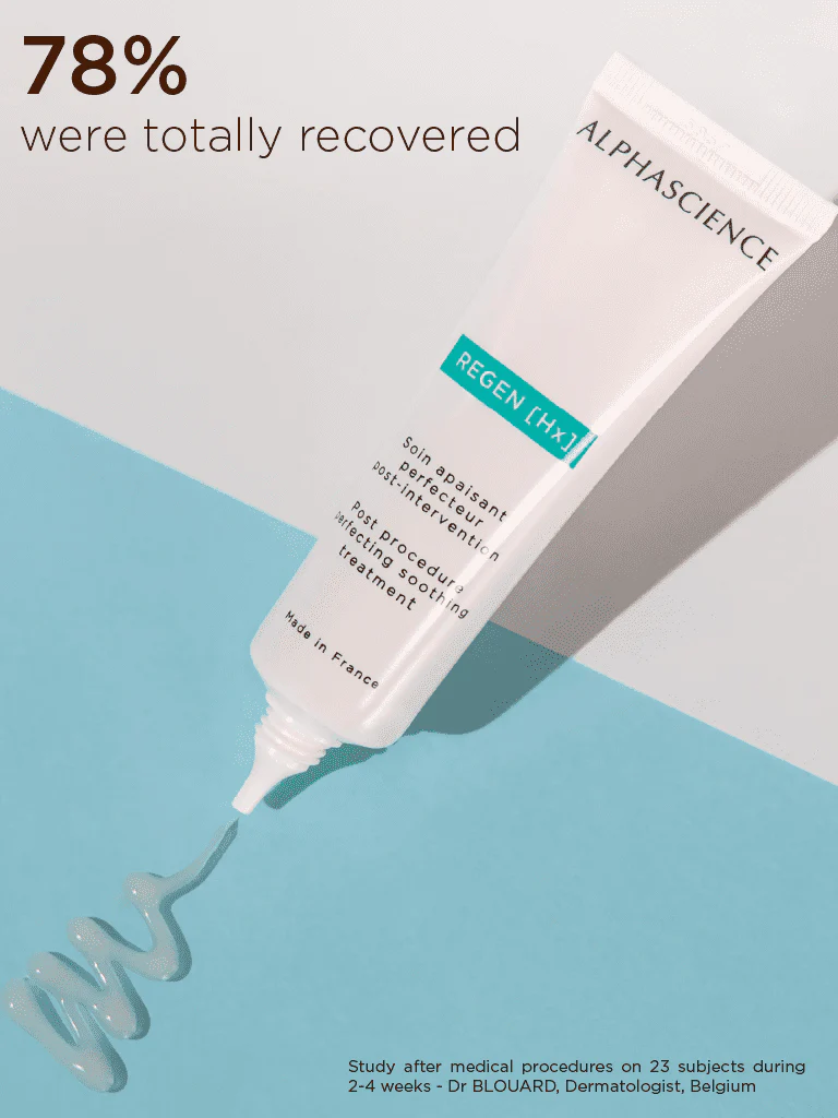 REGEN [Hx] is indicated for skin quality improvement, regeneration and soothing after aesthetic procedures such as: HA filler, botox, PRP, peelings, lasers, RF, cryotherapy, PDT, electrocoagulation. It strengthens the skin barrier and limits the inflammation to improve skin quality after cosmetic procedures